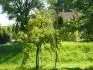 Dále mne zaujalo, že provádíte pravidelný sezónní řez zkrácením plodných letorostů o 1/3 až ½. Dělá to tak hodně lidí. Při tomto způsobu řezu se ale úroda každý rok pomalu, ale jistě vzdaluje od kmínku a tudíž i z pěstitelova dosahu. Vede to k vyholování a prodlužování bazálních částí kosterních větví. U starších stromků jsou nutné podpěry, aby se dlouhé tenké větve pod tíhou úrody nezlomily. Tak trochu o tom svědčí i Vaše fotka, pardon. Myslím si, že lepší princip řezu broskvoní je takový, že na každé nosné kosterní větvi vybereme vhodně směrovaný a silný letorost(-y), který je na dané větvi posazen co nejblíže ke kmínku a všechny letorosty za ním vyrůstající (tj. vzdálenější od kmínku) nemilosrdně odstraníme. Tímto způsobem se daří mnohem lépe držet korunu v kompaktním tvaru a větve se nám nerozlézají do dálky, korunka zůstává vzdušná, nepřehuštěná. Takhle lze ale z ovocných stromů střihat pouze broskvoně, ostatní ovocné druhy by nám asi moc nepoděkovaly, viz. slova Vašeho tatínka "o broskvoni a vrbě".