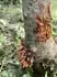 Ty červené "výrůstky" jsou kořeny, nám to dělají některé podnože, tu díru v kůře nad nimi jste vyrobil zřejně nárazem sekačky. To, že jabloň neměla letos květy bude souviset s tím, že loni plodila a asi jako mladý stromek už neměla sílu nasadit květní pupeny, také se na tom mohlo projevit loňské sucho, nám nekvetlo jabloní několik a to jsou už dvacetileté stromy.
