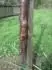 Zjistěte malým zářezem v horní části jestli strom není suchý. V případě že se pod kůrou ještě zazelená, odstraňte ostrým (roubovacím) nožem na postiženém místě opatrně postupně svislými řezy suchou "odlepenou" kůru dokud se neobjeví kůra zdravá. Vzniklou ránu je nutno zatřít stromkovým nebo sadařským balzámem. Terminál (prodloužení kmínku) je příliž dlouhý, ale zatím ho nezkracujte ale vyslepte shora 2-3 pupeny tak, aby nejvyšší, ponechaný zdravý pupen směřoval k ose kmene stromku(podle fotky do leva). V případě, že strom poroste, využíjte horní neolistěnou část terminálu k přitažení letorostu, který si určíte jako terminál. Pokud odchlíplá kůra je po celém obvodě kmínku a vrchní část stromu ještě neuschla, je možno zachránit stromek "přemostěním" pomocí roubu. Kolem stromku odstraňte plevel a nastelte vrstvu posečené trávy ale kmen nechejte volný. Hora.