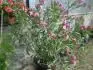 Nemůžu sice honem najít foto celých záhonů, tak posílám aspoň jak se vede nějakým druhům, zvlášť bílý klematis se umí vyřádit ve velikosti květů - nevím, jaké květy mají jiní pěstitelé, tento mívá i 20cm v průměru, vypadají jako malé talíře, pro nás je to docela div, září na celou zahradu..