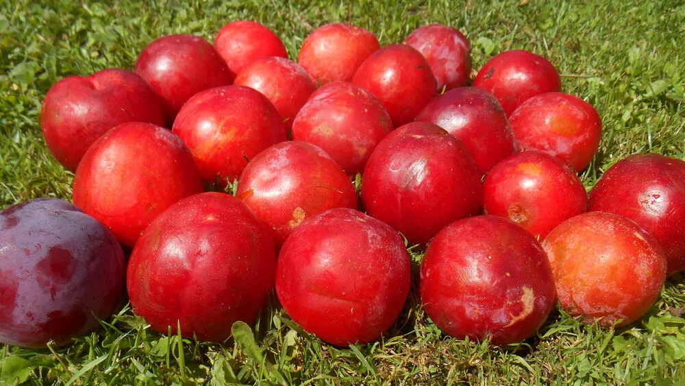 Švestkomeruňka (no name) + vlevo jeden plod Fortune