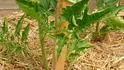 na začátku června vysazená rajčata venku mají poslední dva týdny zkroucené spodní listy. Většina rostliny včetně terminálů vypadá v pořádku. Zamulčováno slámou asi 14 dní po výsadbě.